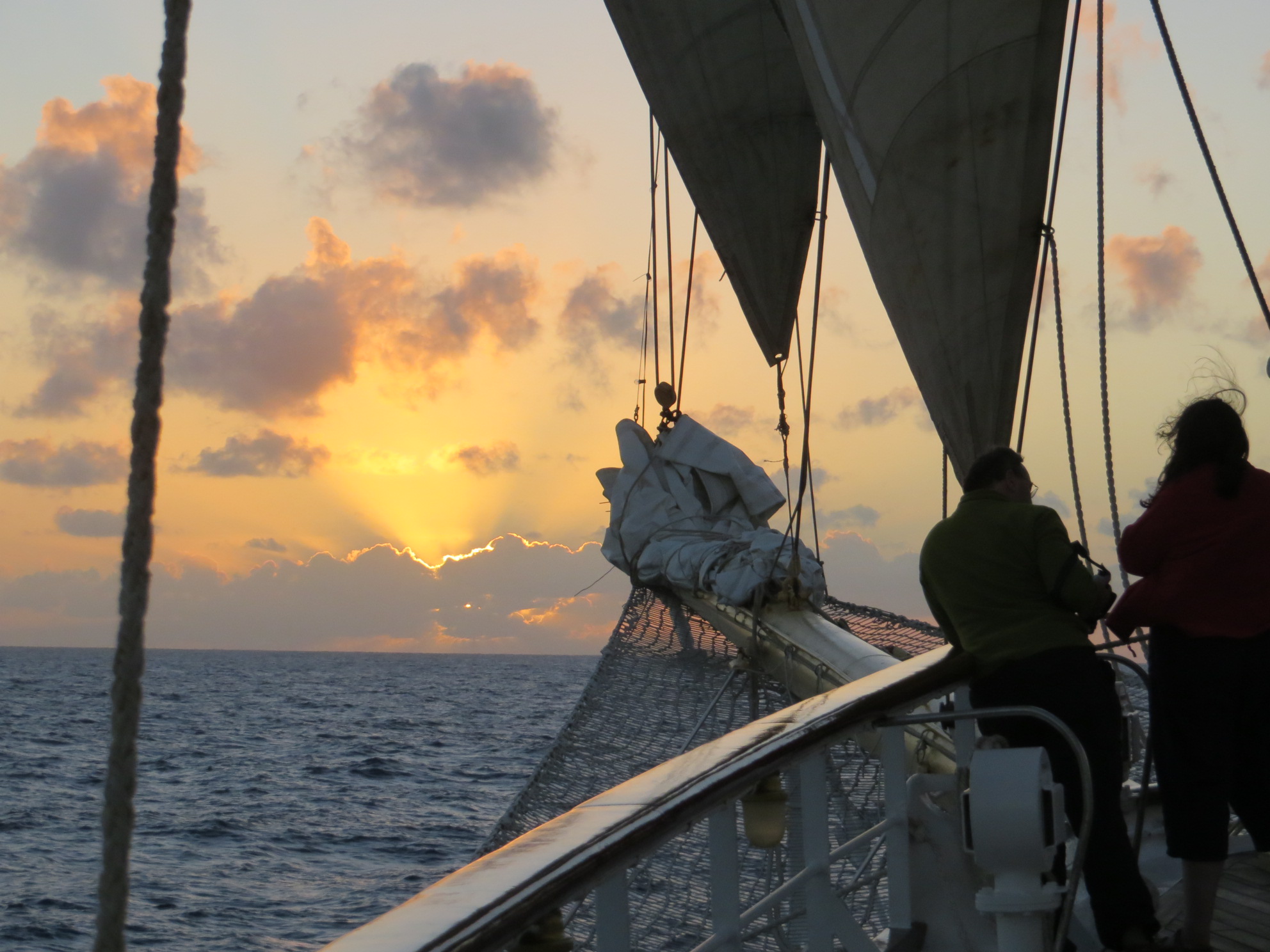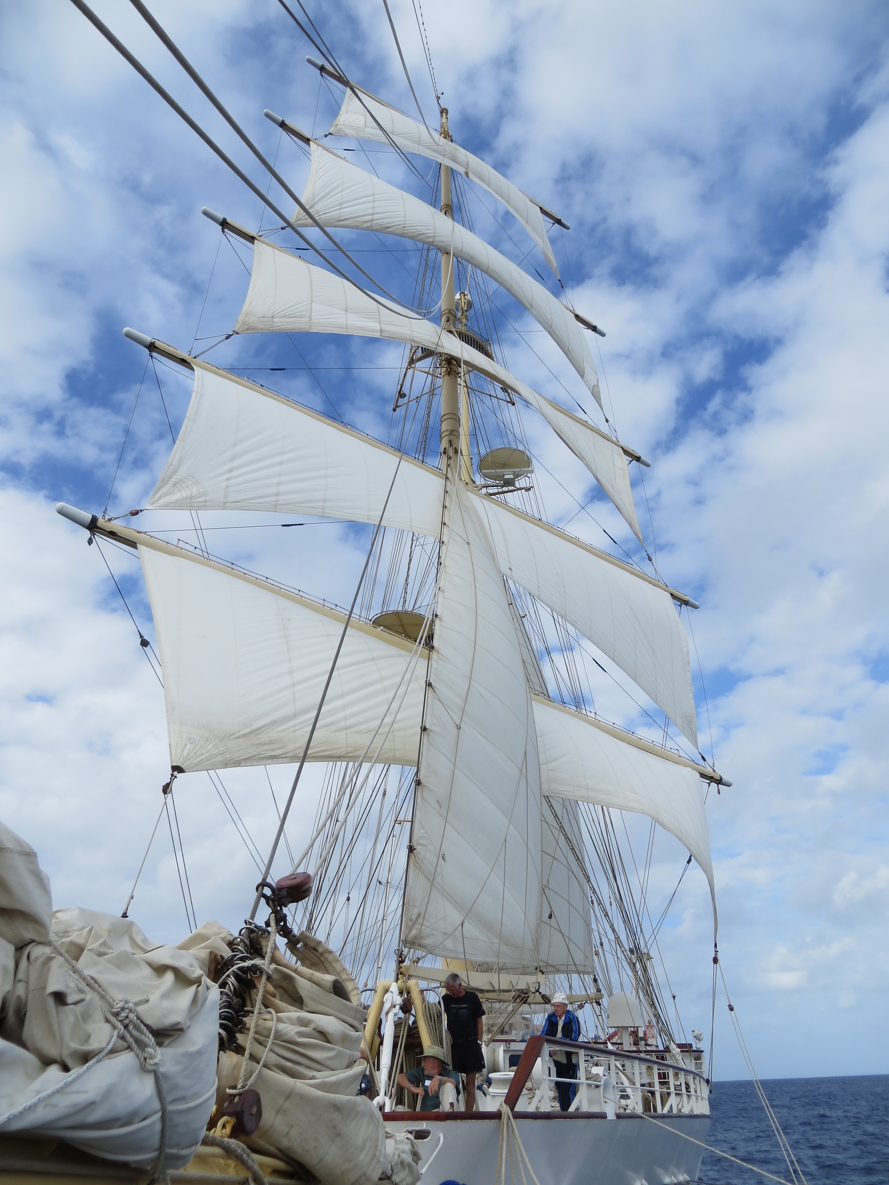 we then boarded the Star Flyer, a very nice 4-masted tall ship with 180 passengers and 80 crew. About 30 pf the passengers are on a cruise and will leave when we get to the Canary Islands. The rest of us will continue on the trans-Atlantic crossing to Barbados with a full solar eclipse in mid-Atlantic. The trans-Atlantic crossing was set up by Betchart Travel for the Planetary Society (Bill Nye, the science guy, an officer), American Association for the Advancement of Science, Sigma Xi (science honor society), American Chemical Society, and Cal Alumni Travel. it is an interesting collection of people. We have encountered several chemists so it is like old home week for me.