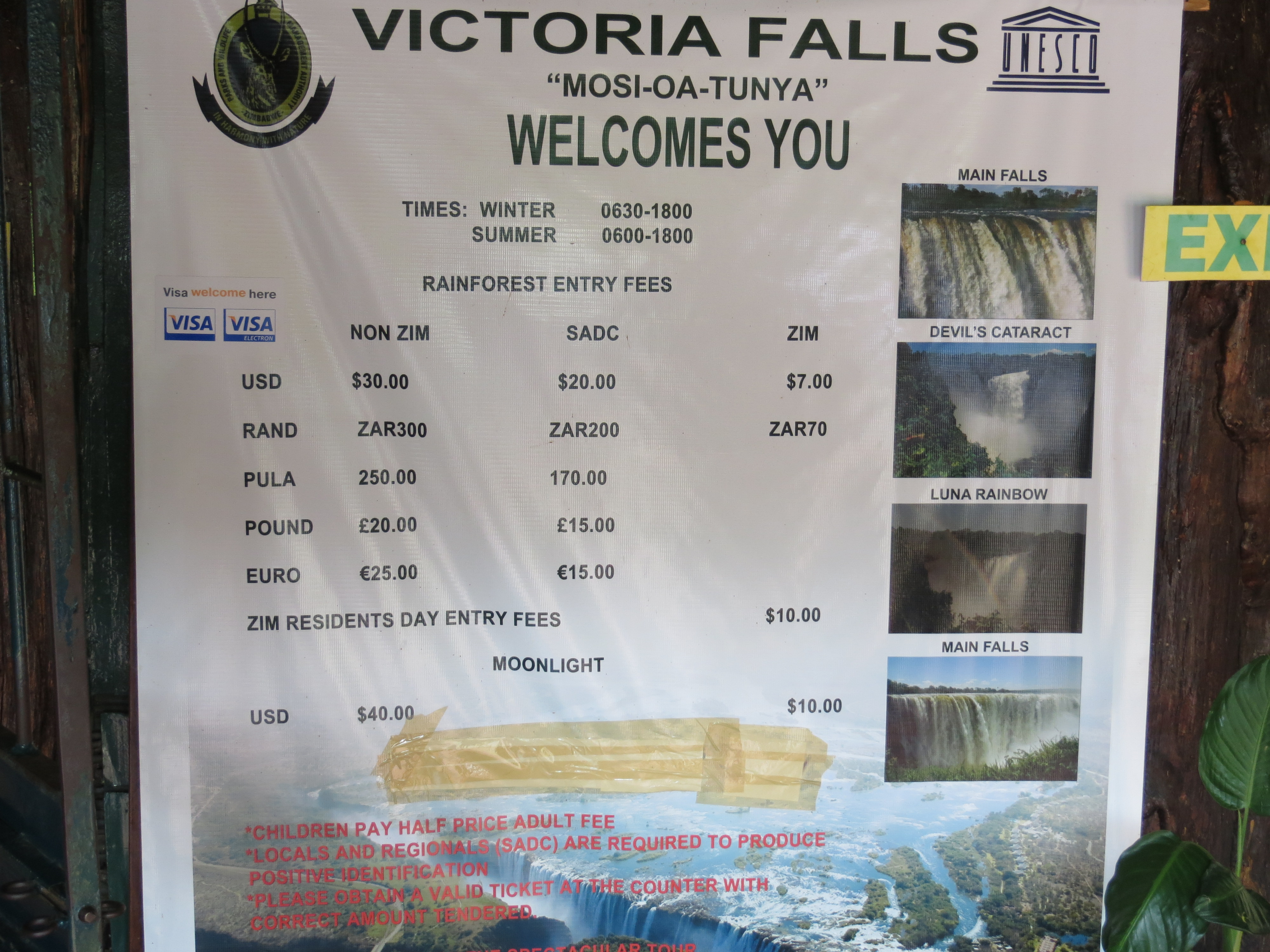 On Jan 19 we flew to Victoria Falls in Zimbawe from Johannesburg, South Africa. We stayed in the grand old Victoria Falls Hotel and visited the actual falls, which is almost visible from the back lawn of the hotel.