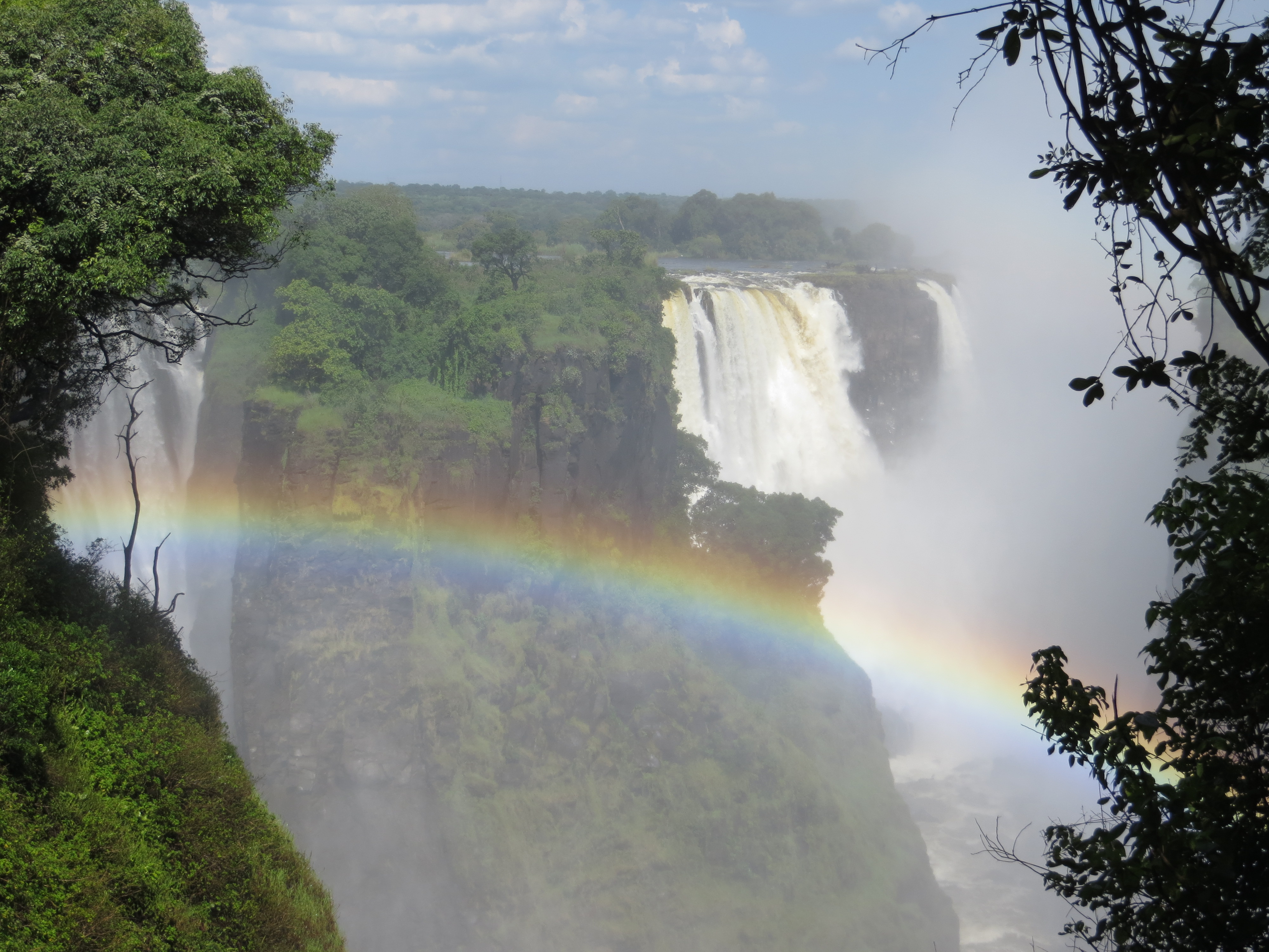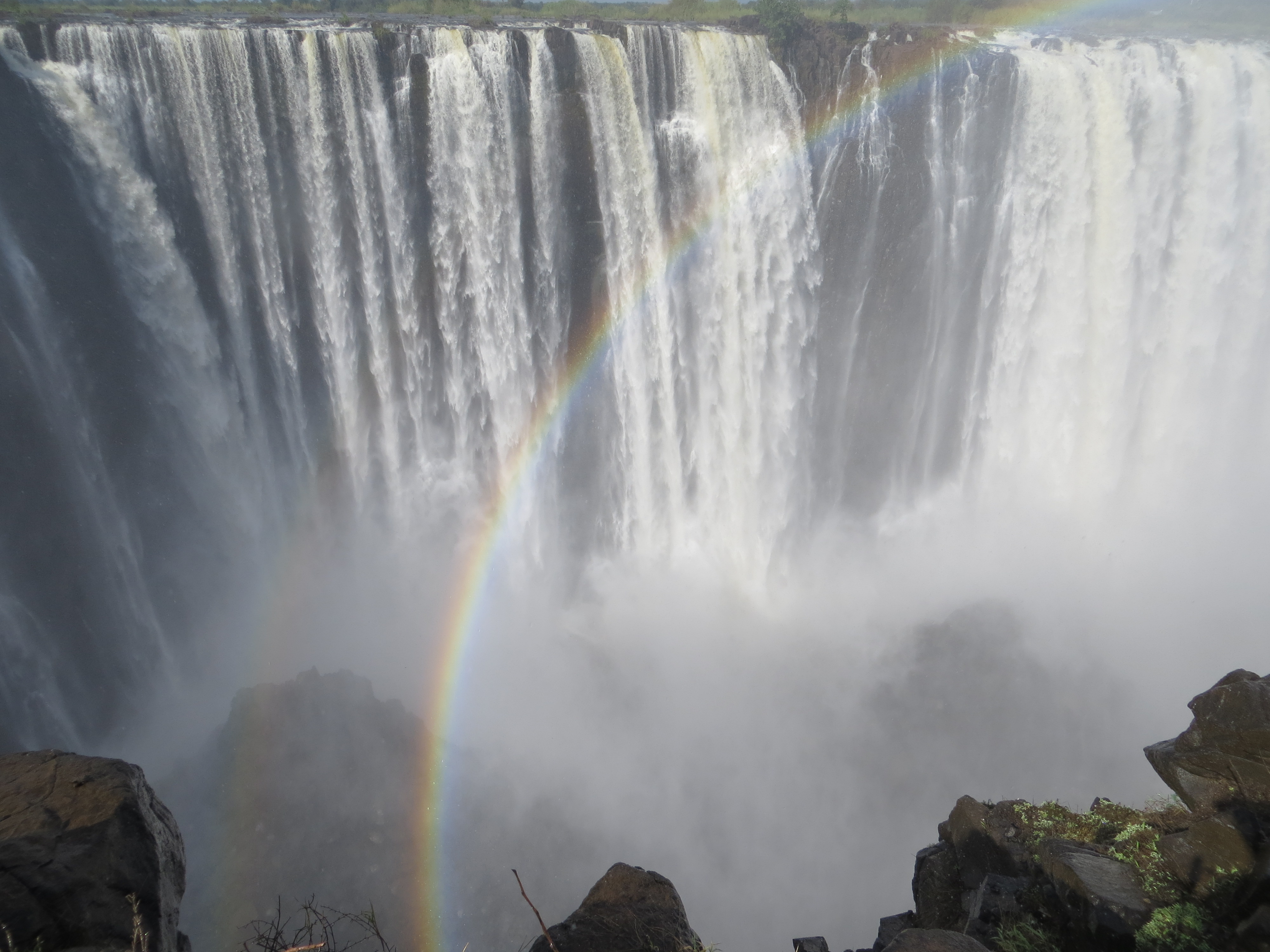 Victoria falls is an immense hollowed out canyon on a smooth plain in the middle of southern Africa. Apparently it was created as the ancient basalt volcanic flow gradually was etched away by water. You really get a sense of how bizarre it seems from the air, where its visible as a huge vapor cloud from the deep canyon on an otherwise flat landscape.
