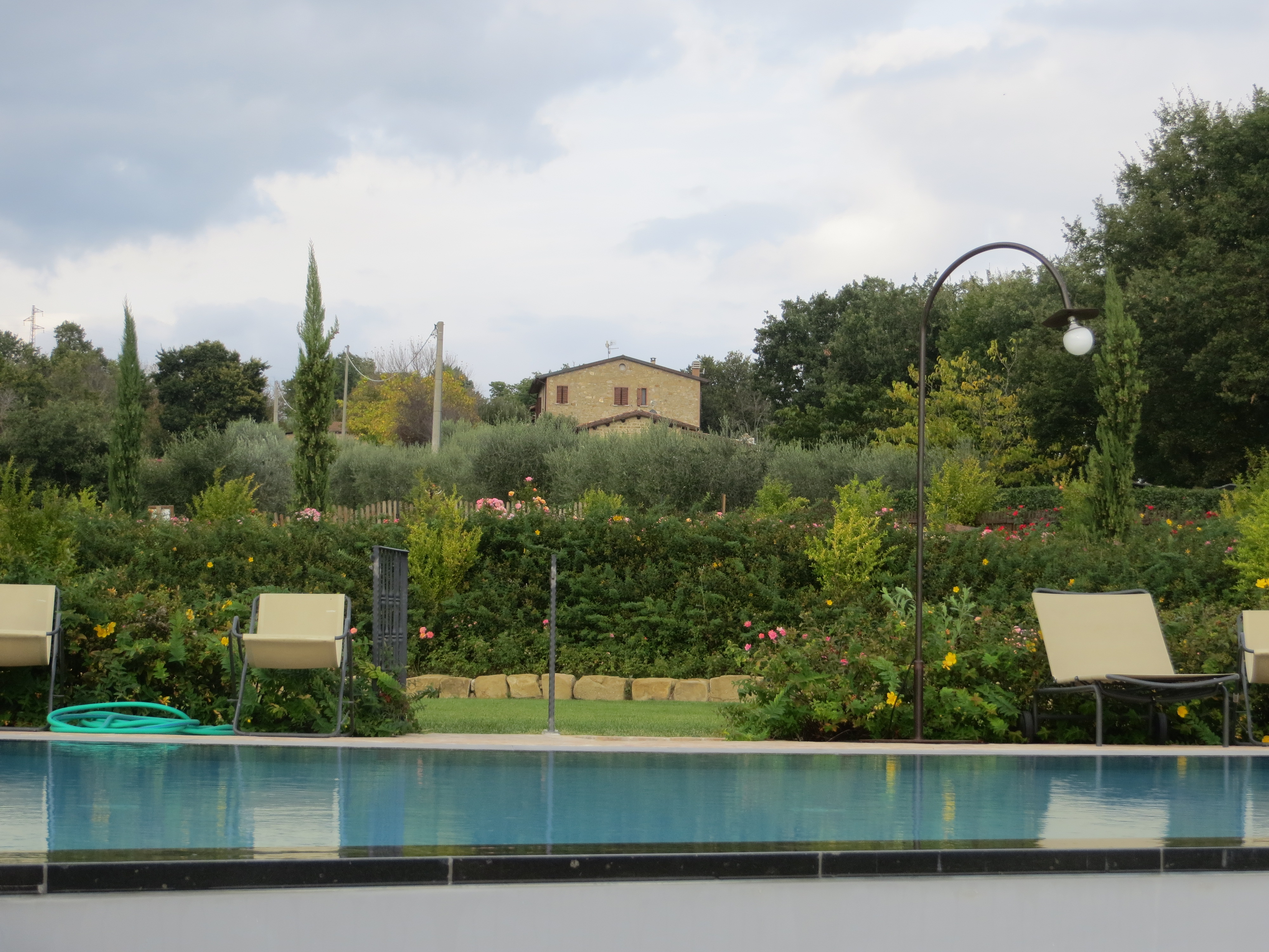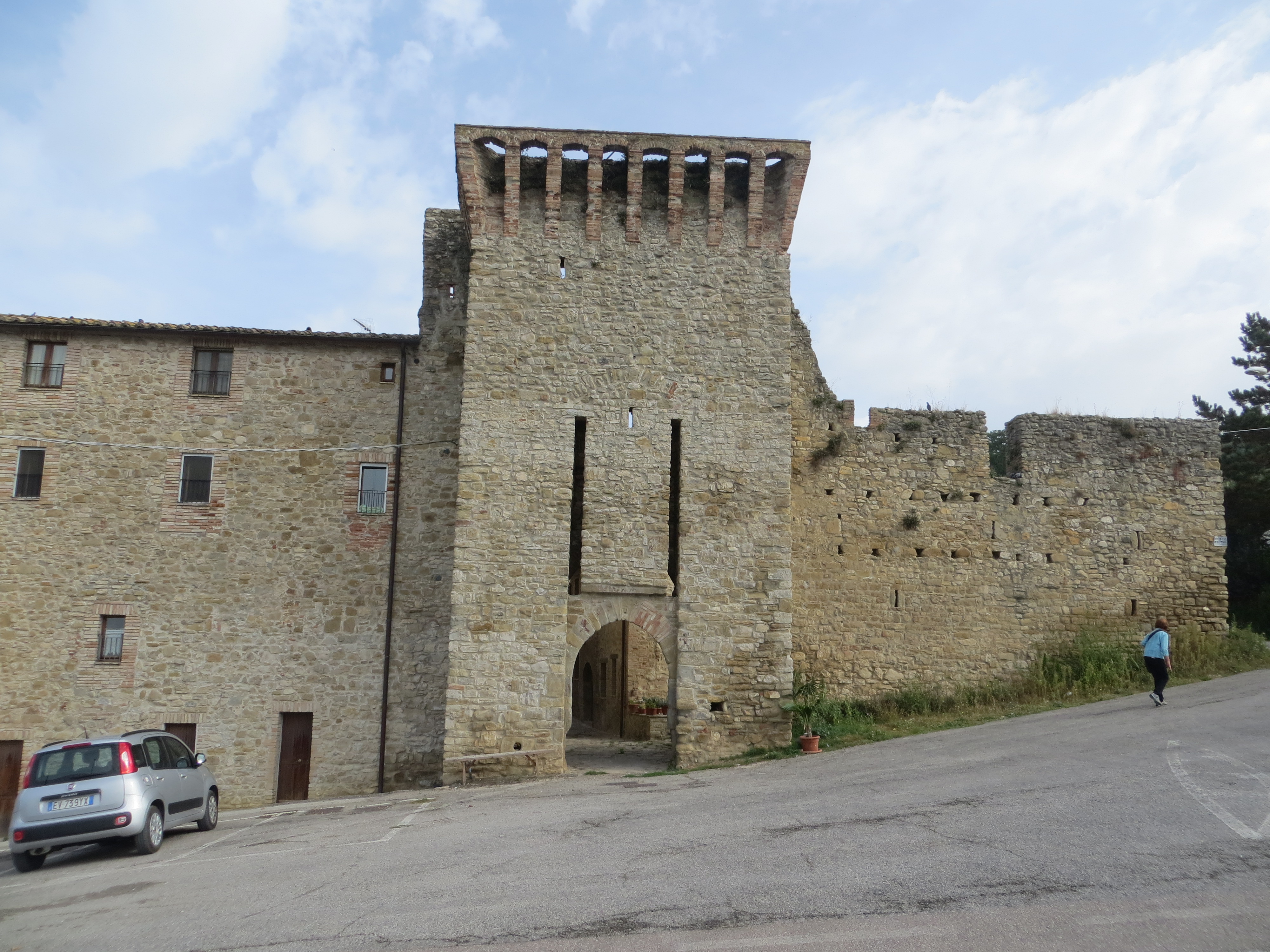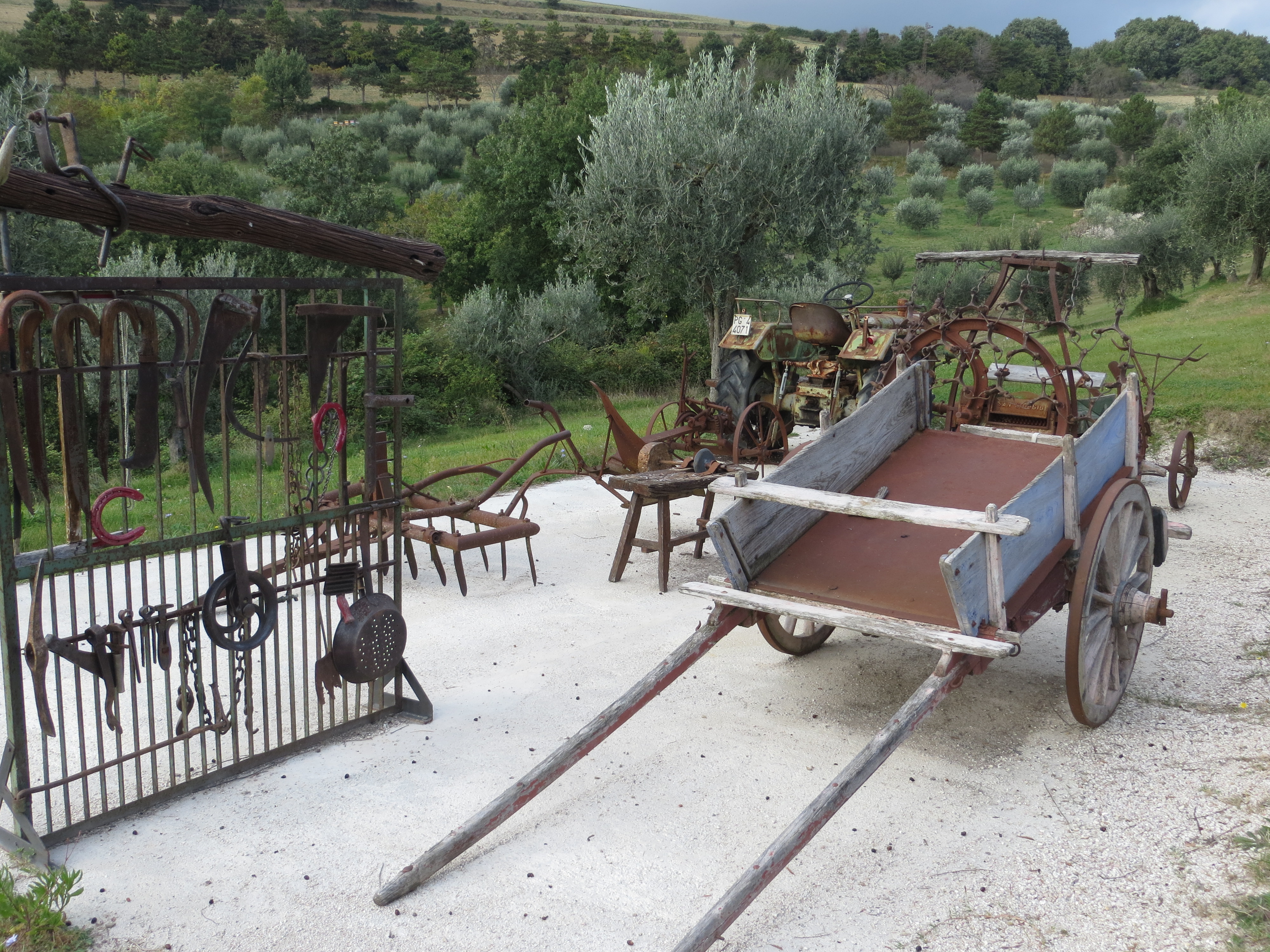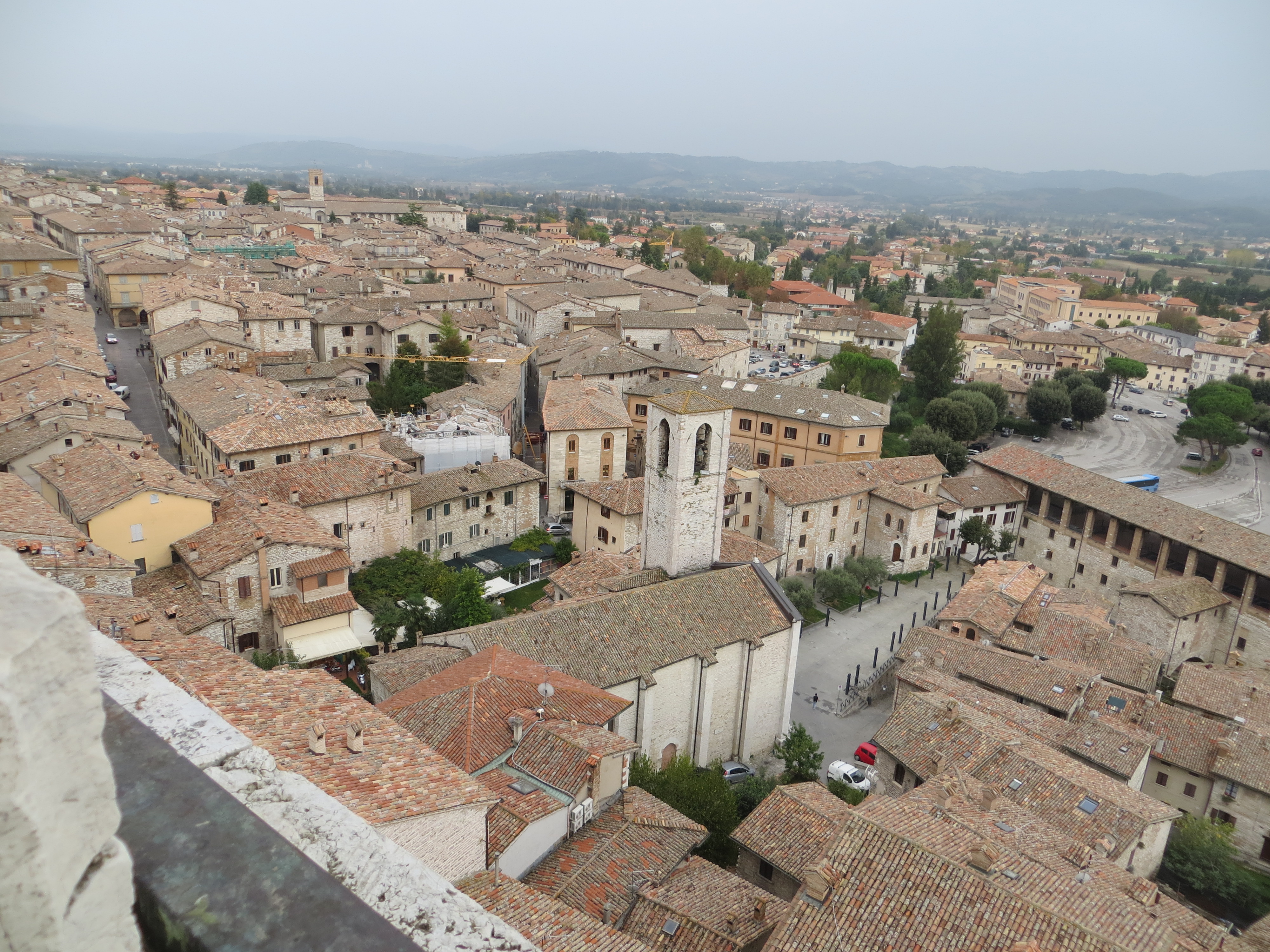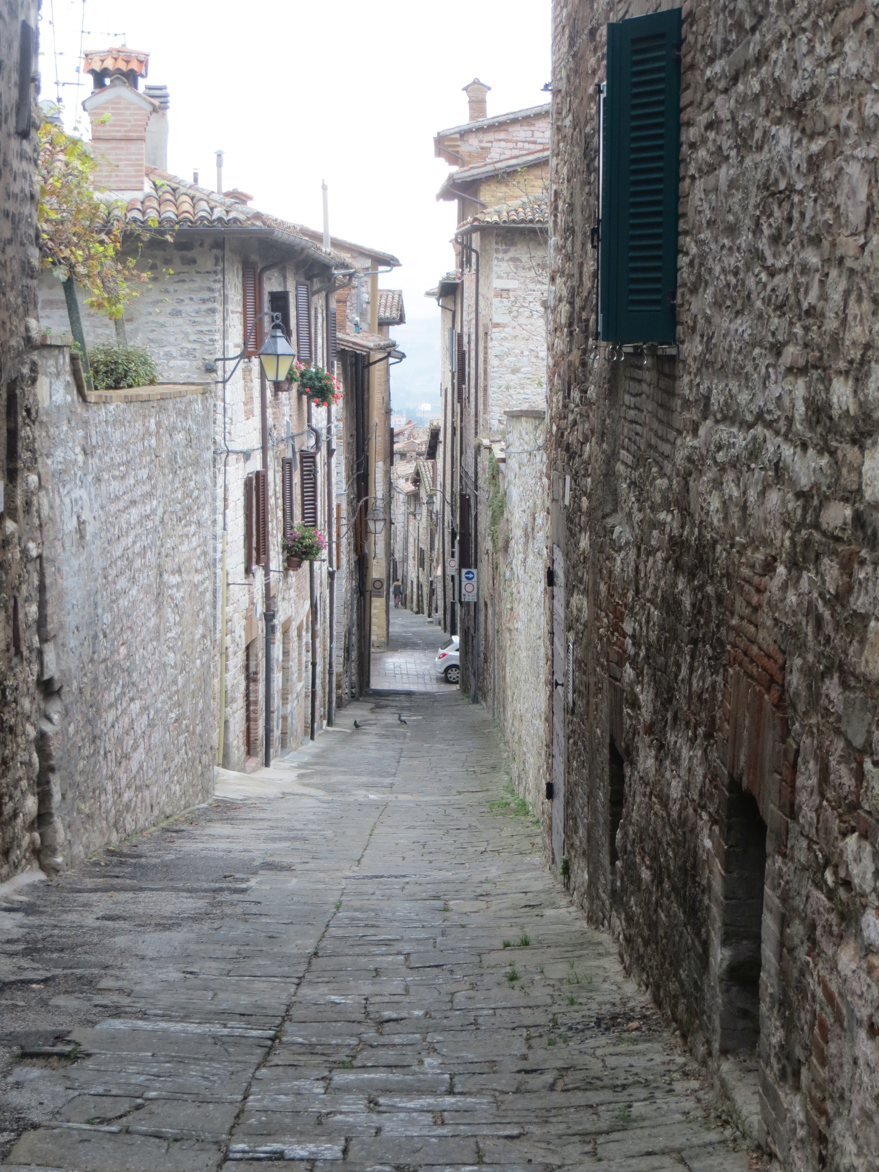 On Tuesday 14-Oct under a threateningly overcast sky we drove out of the driveway of Agriturismo il Melograno in Pianello and turned left. We didn’t know the area and thought vaguely that we’d head to Assisi nearby, but decided to see where this road we were on would lead.