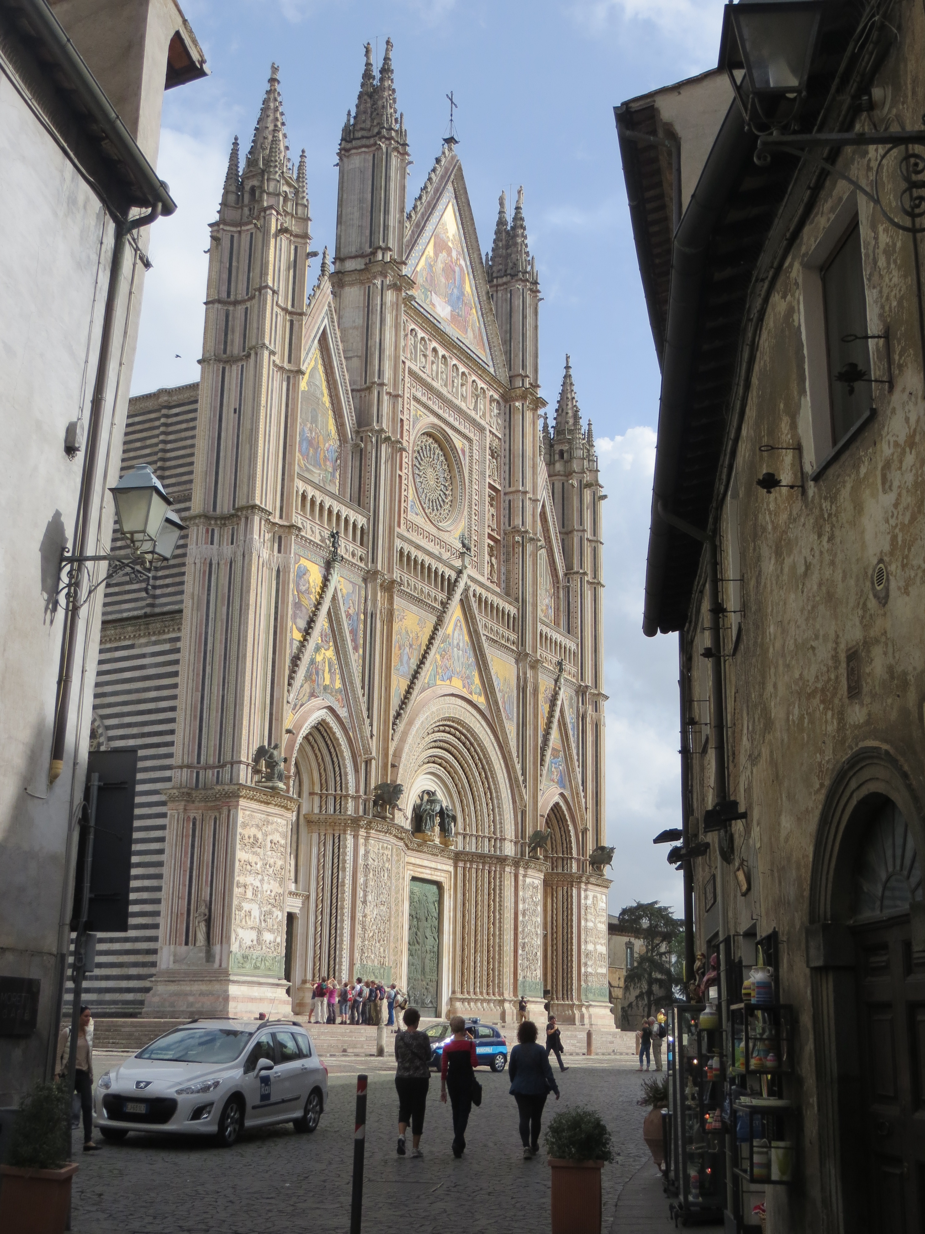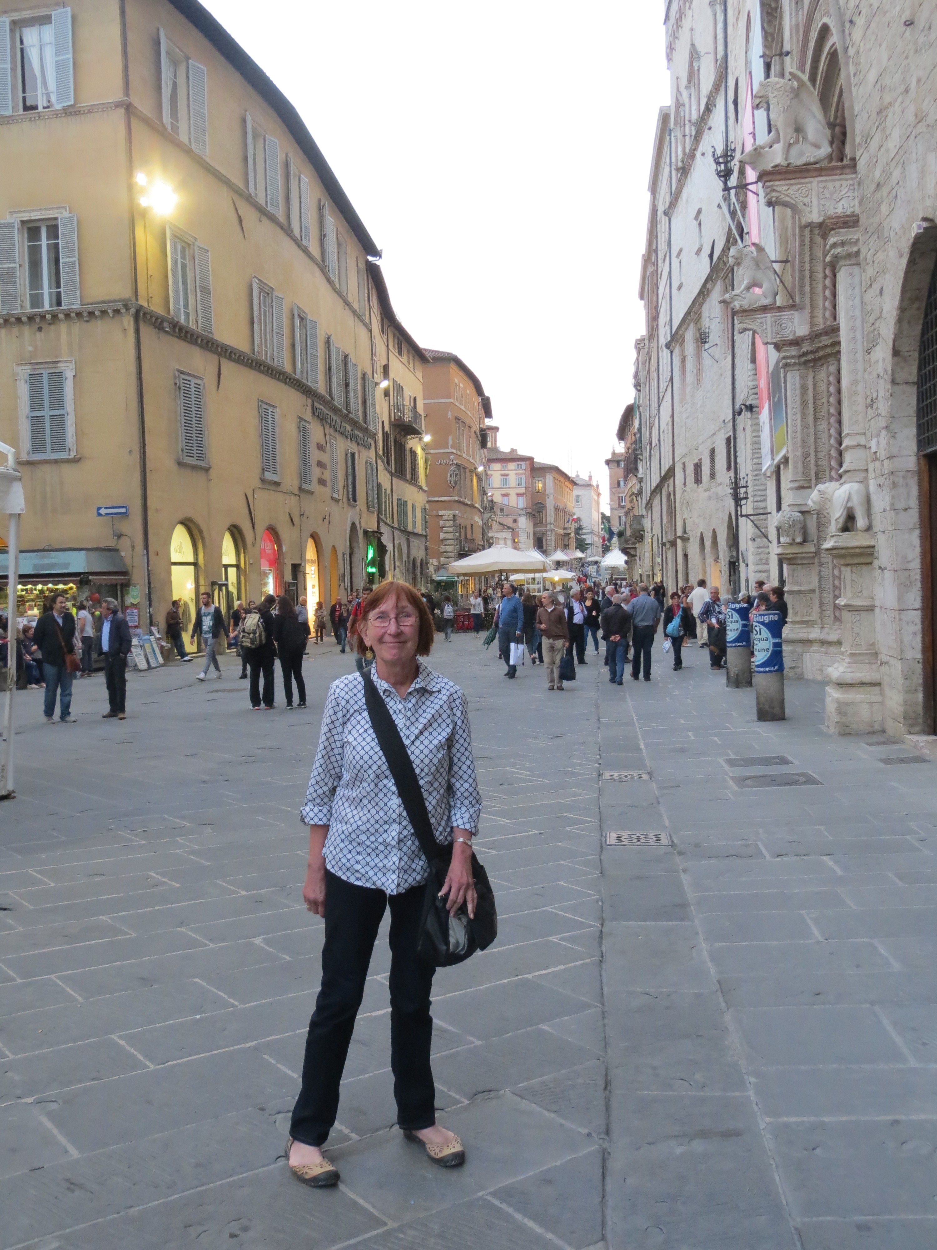 As it was getting late in the day and we still wanted to see Assisi, we skipped a visit to the Roman theater and got on the road. We arrived at Assisi as the sun was setting and drove into and around the hilltop citadel in darkness. Jessie stopped in to buy some wine and we both stayed in the shop for some time getting served samples of cheese and wine. Both were great and we bought some of almost everything we tried. We still have some of the Pecorino Subasio left, but not for long.