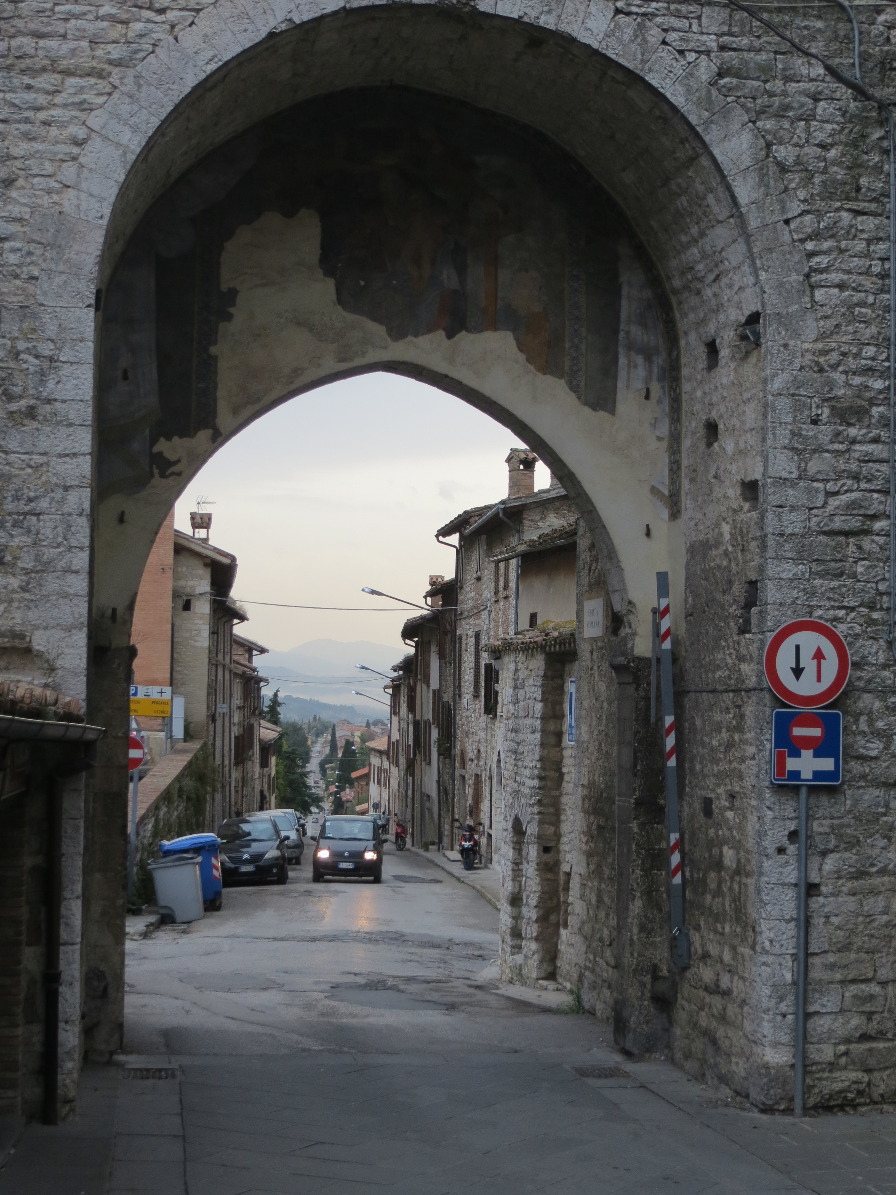 Assisi entry gate at night
