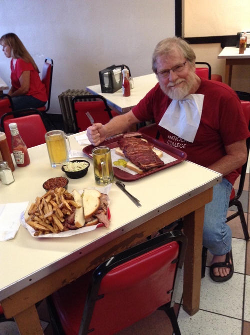 Busy RV park in center of town so we can walk to Roadfood-recommended Pepperhead restaurant. We eat dinner with Connie, a retired burn unit nurse from Chicago.