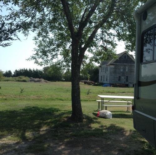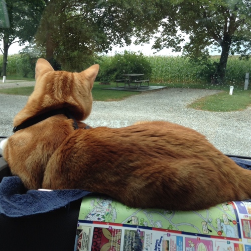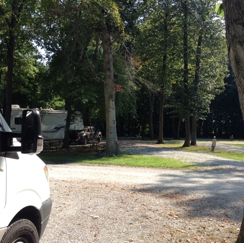 The campground. We stopped in Indianapolis on the way here to buy food for Tico. On to Grafton IL today to join the eclipse party on Monday.