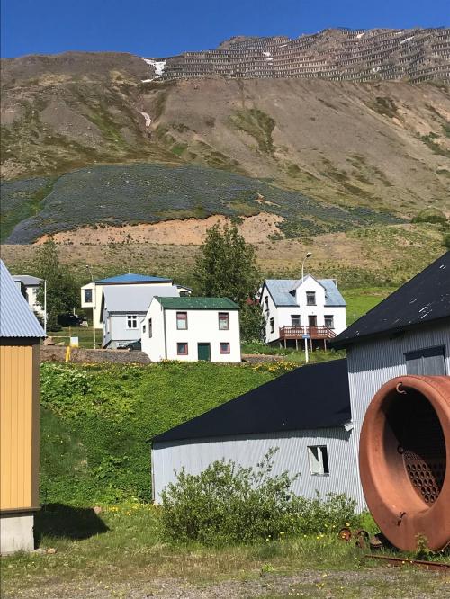 We had a brief stop in this pretty town which has a good herring museum. In the photo we see at the top avalanche fences. Then mid mountain, Alaskan lupine (invasive but pretty).